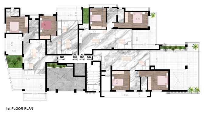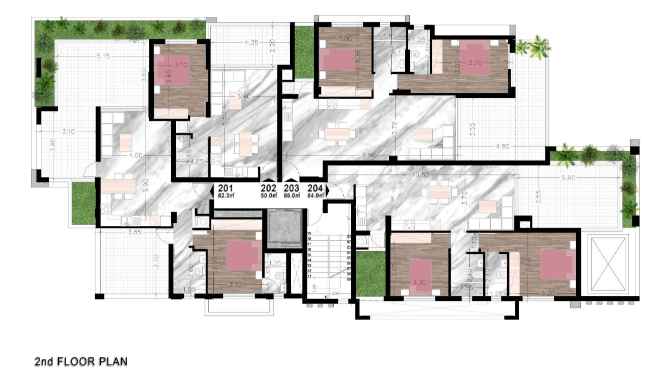 Modern 2-bedroom apartment with 2 bathrooms offers 85 sqm of space. It is under construction and will be delivered early 2025. The apartment includes a covered parking space, elevator, a balcony, and a storage room. It has provisions for underfloor heating and air conditioning.