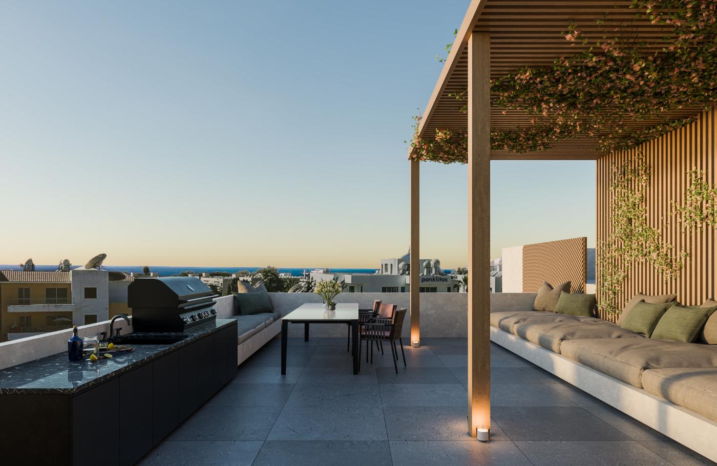 Luxury 2-bedroom penthouse located in the sought-after Tomb of the Kings area, Paphos. Spanning 69 sqm, it boasts 2 modern bathrooms, a covered veranda 8 sqm, and an uncovered veranda 11.6 sqm. Enjoy your private rooftop terrace of 66 sqm, perfect for entertaining or relaxation. Additional features include a storage room, private parking, and access to a 60 sqm communal swimming pool. Fully loaded Italian furniture is available for an extra €25,000. Benefit from underfloor heating, VRV air conditioning, and walking distance to the beach. Experience premium living in a prime location.