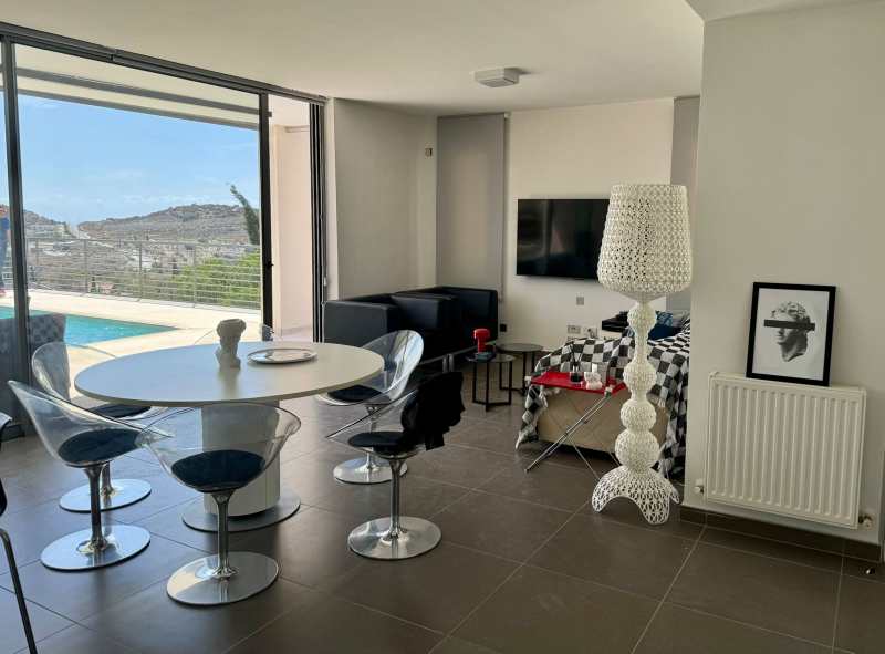 2-bedroom apartment in Agios Tychon offers luxury living with 2 modern bathrooms and elegant designer furnishings. Enjoy a fully equipped kitchen with new Miele appliances, a private swimming pool, and a beautifully landscaped garden. The covered veranda provides additional outdoor space, while air conditioning in all rooms ensures year-round comfort. Pets are welcome with an extra deposit. The property also features covered parking for added convenience. Monthly rent is €3100, with one deposit and one month’s rent required in advance.