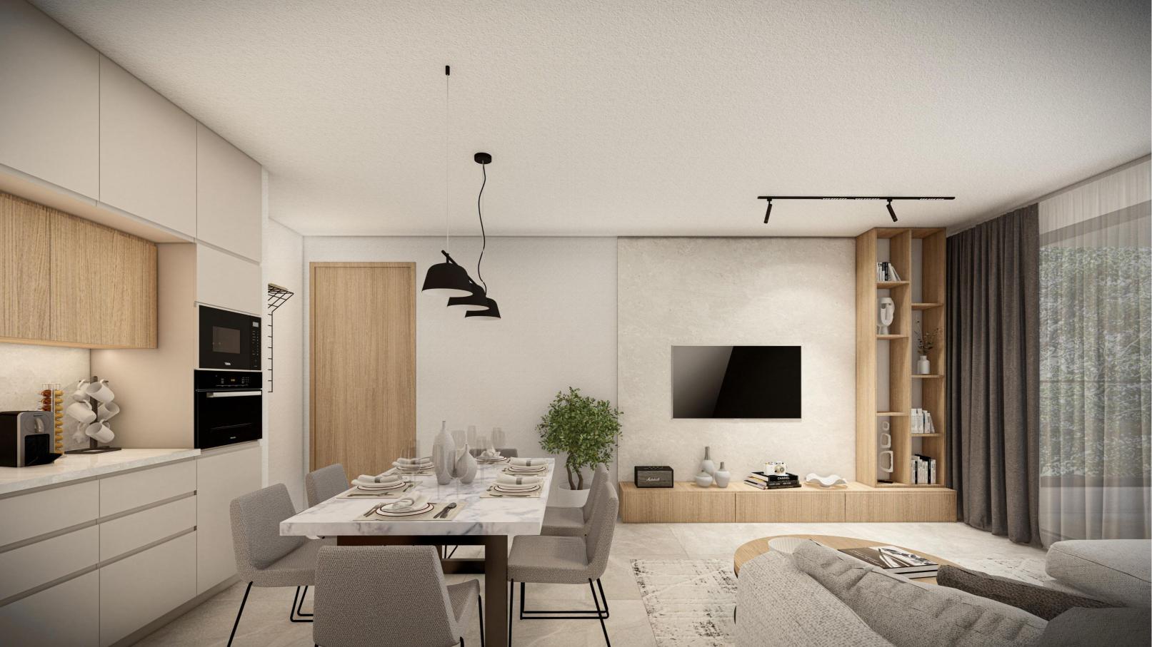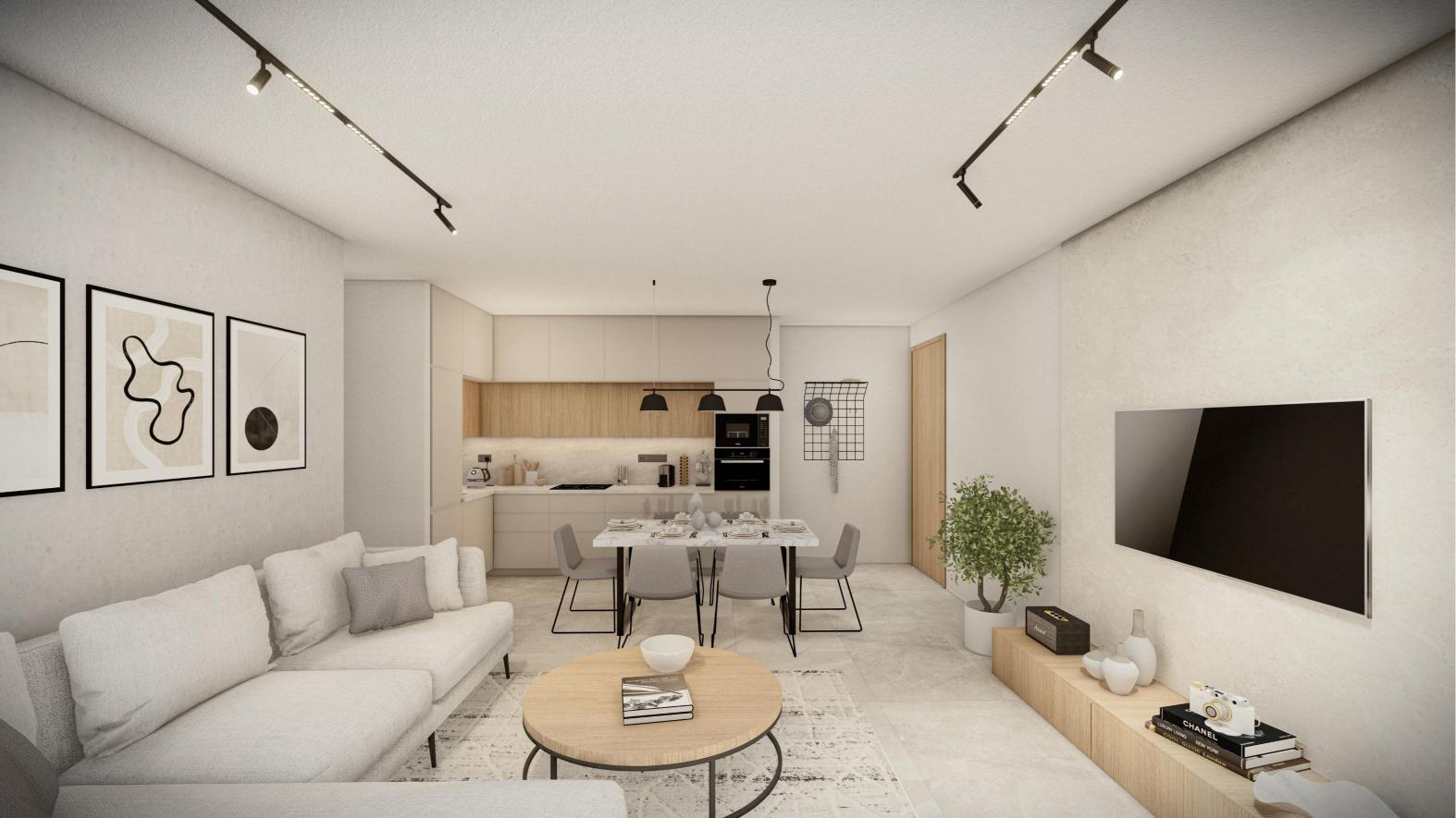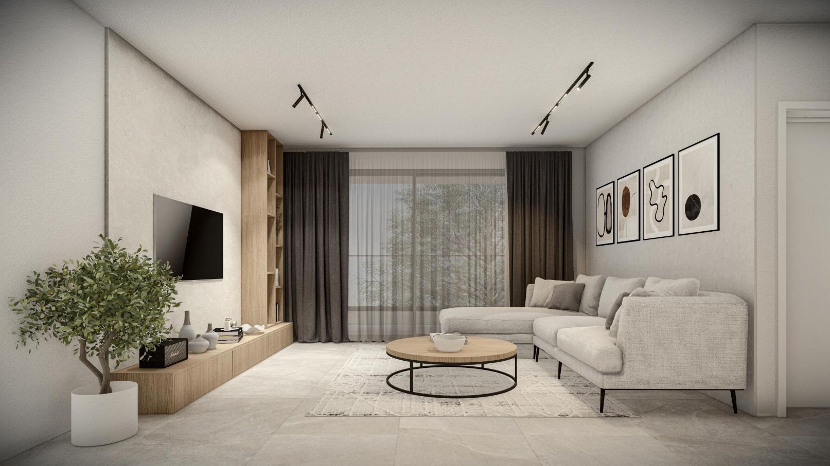 Stylish 2-bedroom apartment designed for comfort and elegance, featuring a spacious living area, a modern kitchen, a guest WC, a bathroom, and a private balcony. The internal covered area spans 78.75sqm, complemented by a covered veranda of 18.15sqm and uncovered verandas of 11.95sqm. This property is perfect for families seeking tranquility or investors aiming for a high-value location. Situated in a prestigious area, it offers the ideal blend of quiet living and potential for growth.