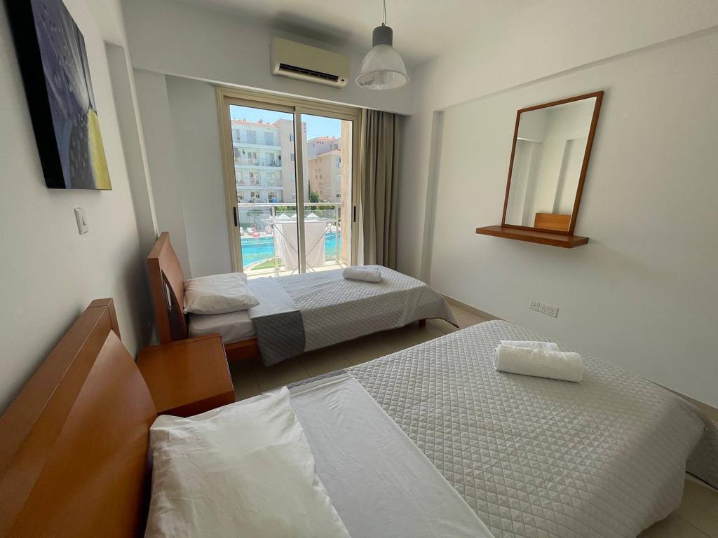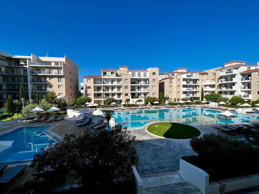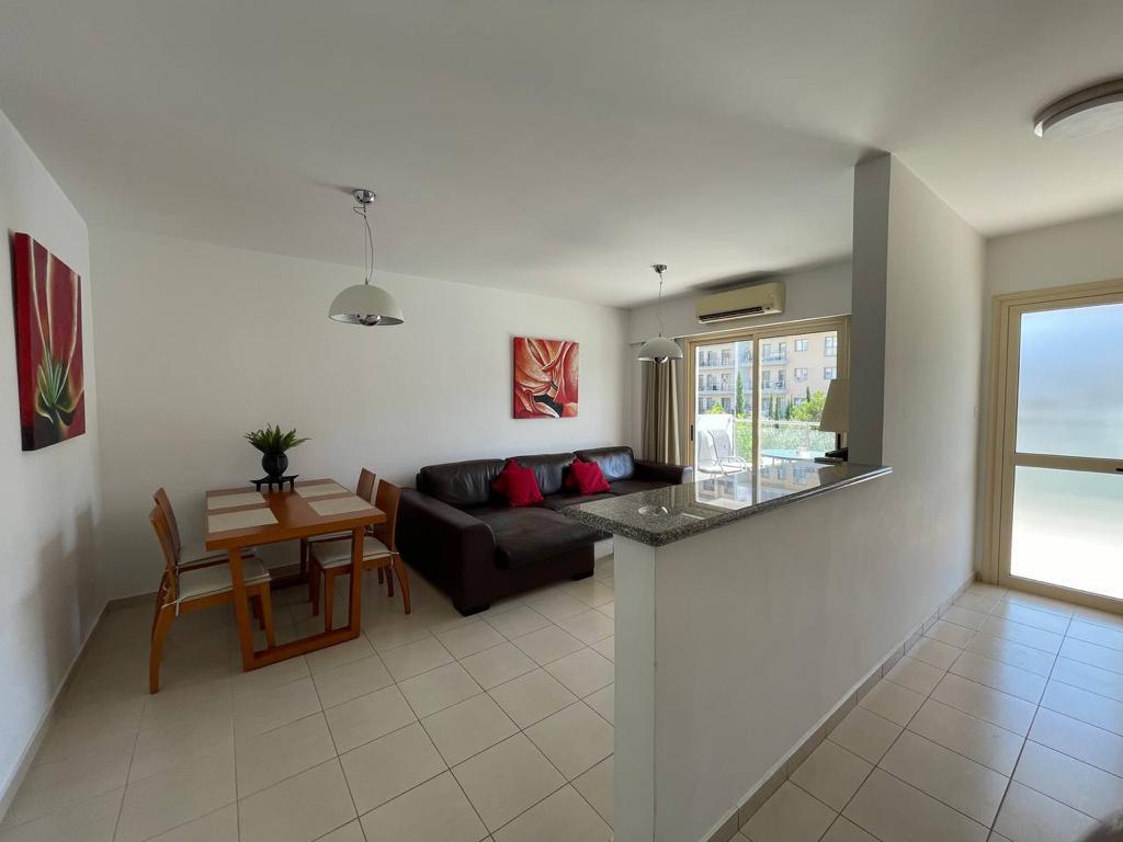 For sale in Paphos, Elysia Park (Universal): a 2-bedroom apartment located on the 1st floor of a secure complex. The apartment features a spacious 78 sqm covered area, a 15 sqm covered veranda, and includes 2 bathrooms. Fully furnished and equipped with A/C in all rooms, the property offers covered parking and a 9 sqm storage room. Residents enjoy access to indoor and outdoor pools, a gym, a spa, and additional facilities such as a restaurant, pharmacy, and playgrounds. Title deeds are available.