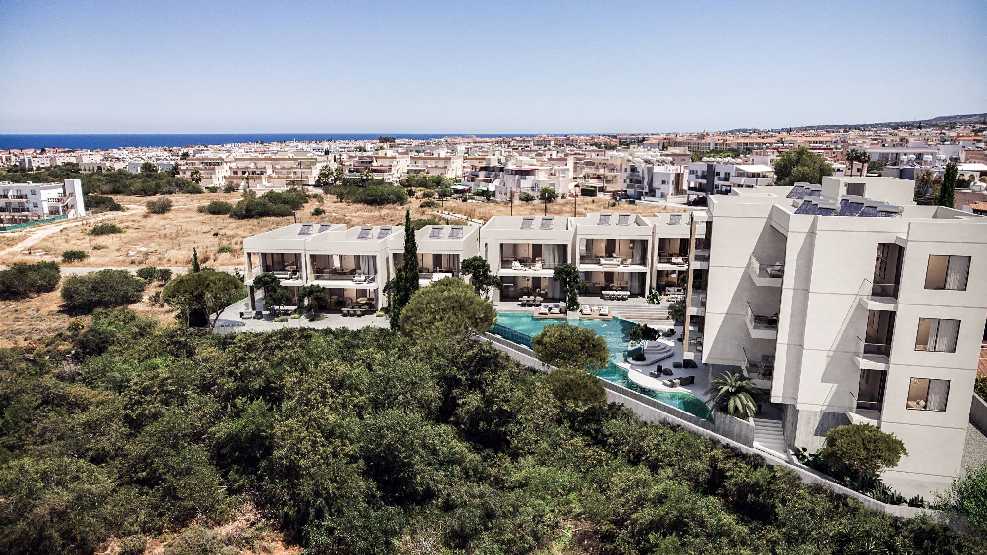 Stunning 2-bedroom, 2-bathroom lifestyle apartments in Kapparis, perfect for families and individuals seeking a blend of comfort and modern living. With an 80 sqm internal area, 9 sqm open veranda, and 16 sqm covered veranda, these residences offer spacious interiors. Enjoy top-tier amenities such as a communal round-shaped swimming pool, an elevator, storage room, and covered parking. Designed for energy efficiency (A), the apartments feature provisions for underfloor heating and A/C. The project’s standout swim-up apartments and breathtaking sea views of the Famagusta coast enhance its exclusivity. Experience luxury in a private and serene environment. Completion is set for June 2026