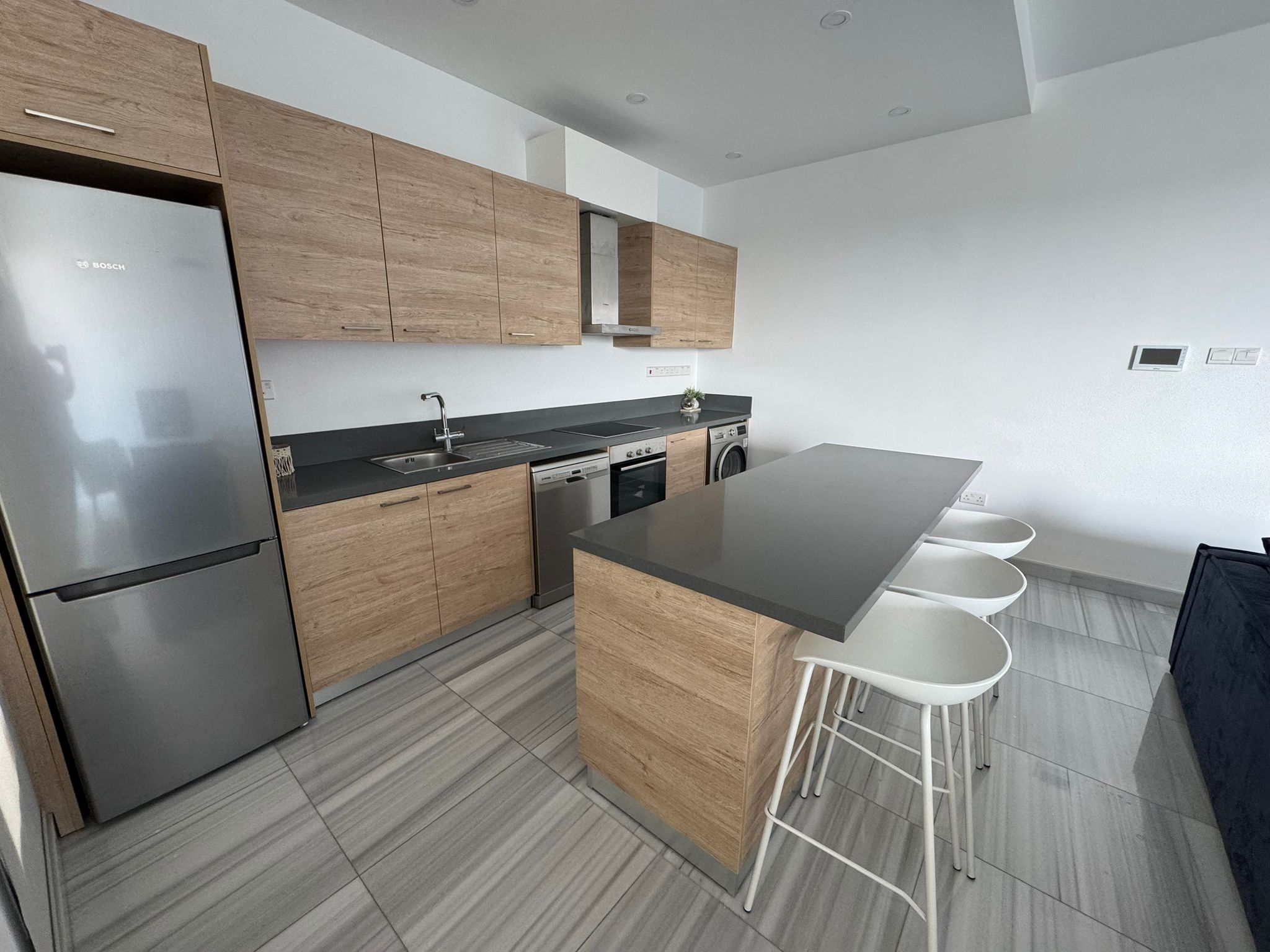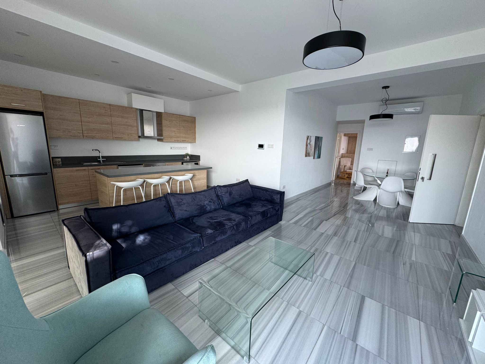 For long-term rent in Paphos, city center. A 3-bedroom, 2-bathroom apartment located on the 3rd floor of a modern building constructed in 2021. The apartment is fully furnished, features a balcony and elevator, and allows pets with an additional deposit of 500€. The monthly rent is €1,800, requiring two months’ rent upfront and one deposit.