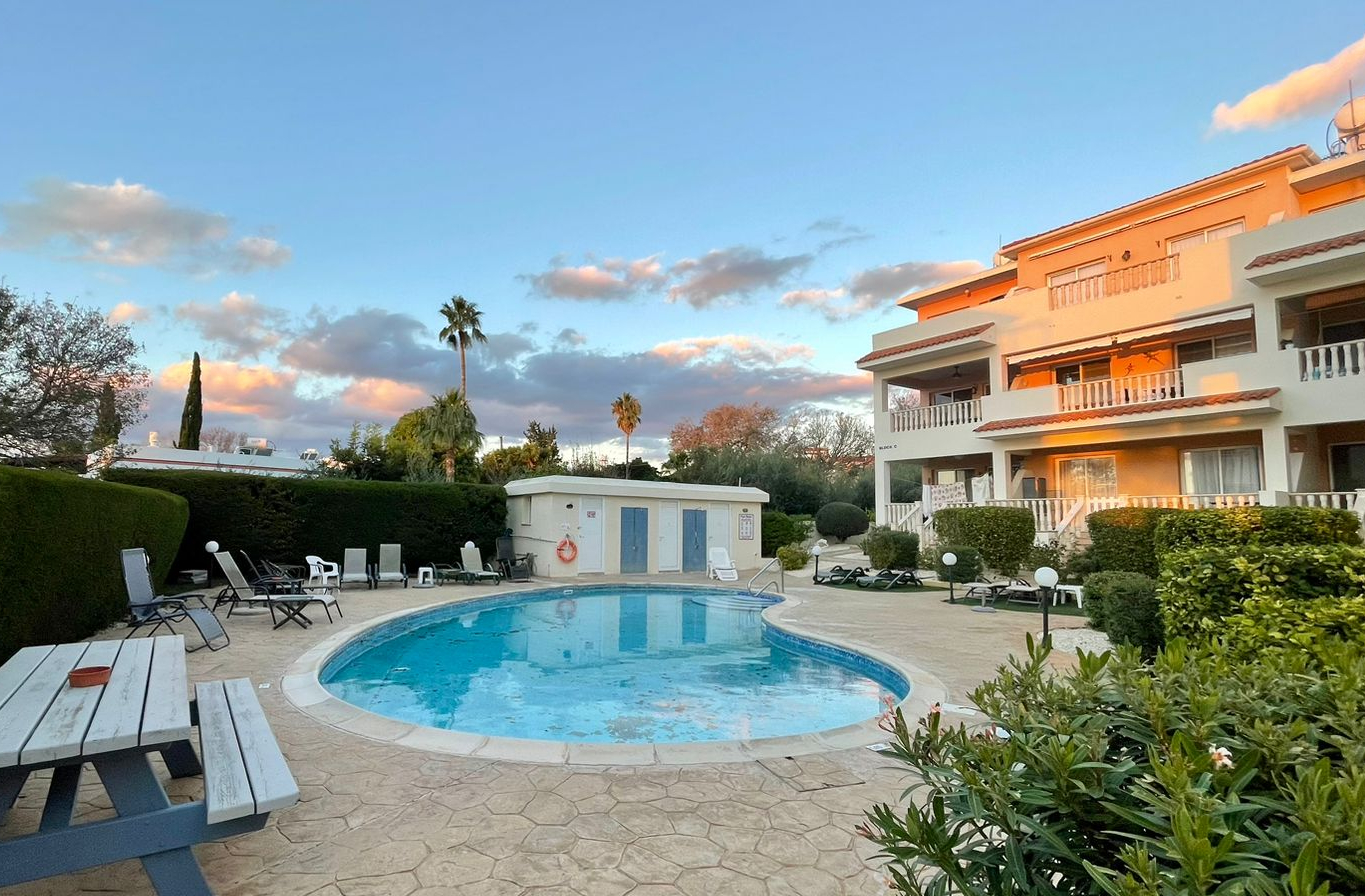 For sale in Paphos, Kissonerga. A fully renovated 3-bedroom, 2-bathroom apartment featuring brand-new kitchen appliances, air conditioners, curtains, and blinds. It offers 100 sqm of covered space and a 10 sqm terrace with sea views. The property is part of a complex with a communal pool and garden and was constructed in 2006. Located just 1 km from the beach. Title deeds available.