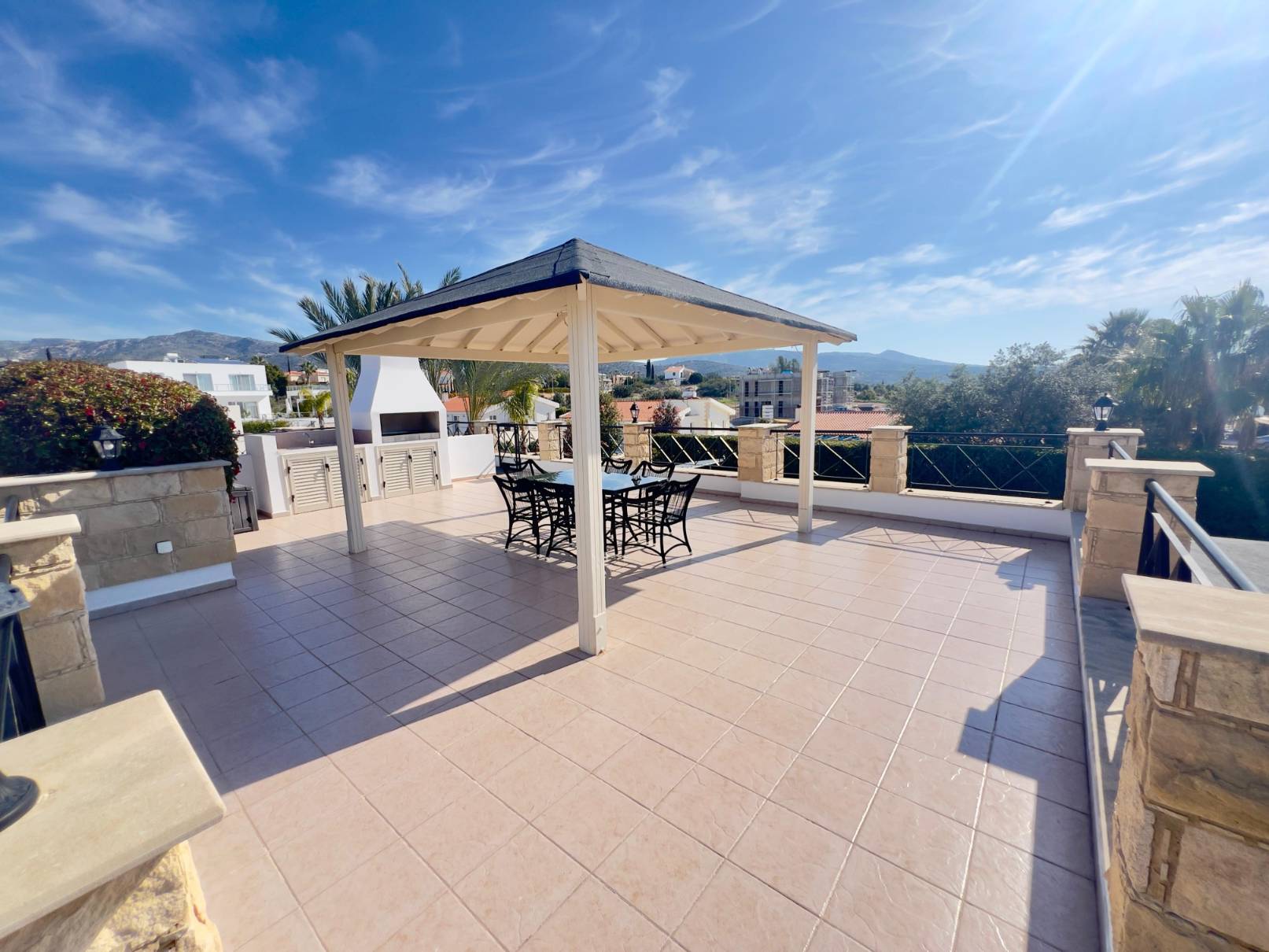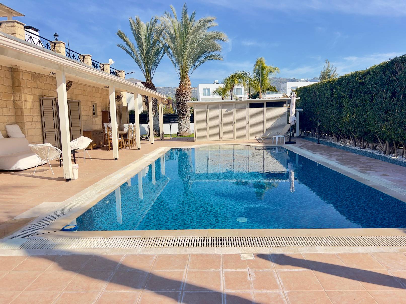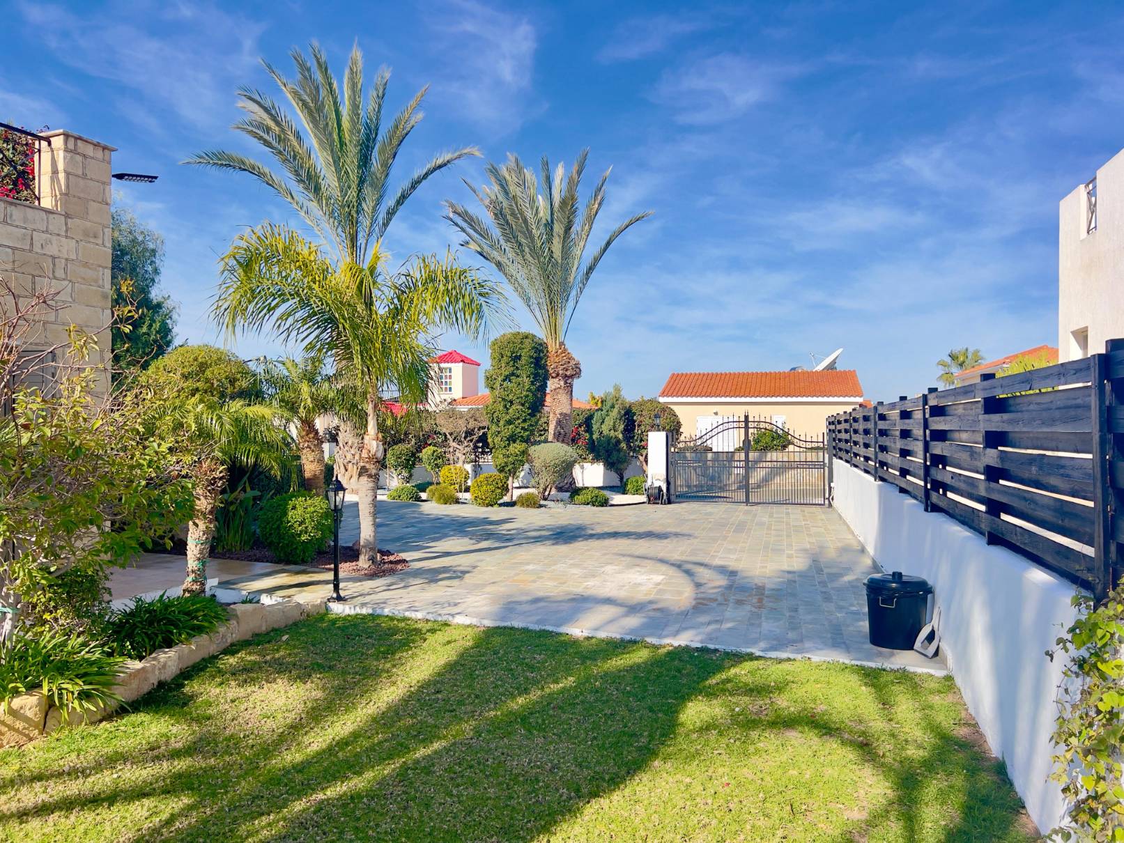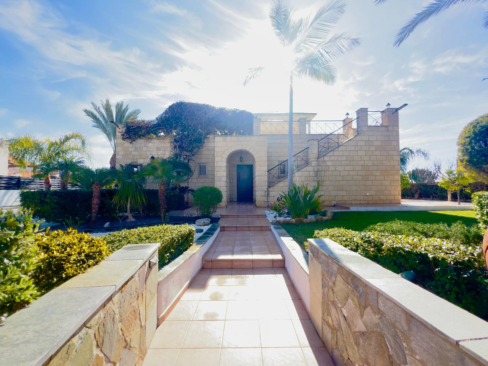 Stunning 3-bedroom, 2-bathroom villa offering breathtaking sea views in a prime location. Fully renovated with high-quality finishes, it sits on a spacious 1,200sqm plot featuring 30 palm trees, flowers, and fruit trees. The 180sqm covered property boasts a 12x5m swimming pool, parking for 5 cars, and separate utility spaces, including a laundry, shower room, workshop, and storage. Equipped with a smart home system with voice control, premium “Neff” appliances, Italian marble floors with heating, and a natural stone exterior. Energy-efficient and secure, this villa is just 2 minutes from Coral Bay Beach. Title deed available – VAT exempt!