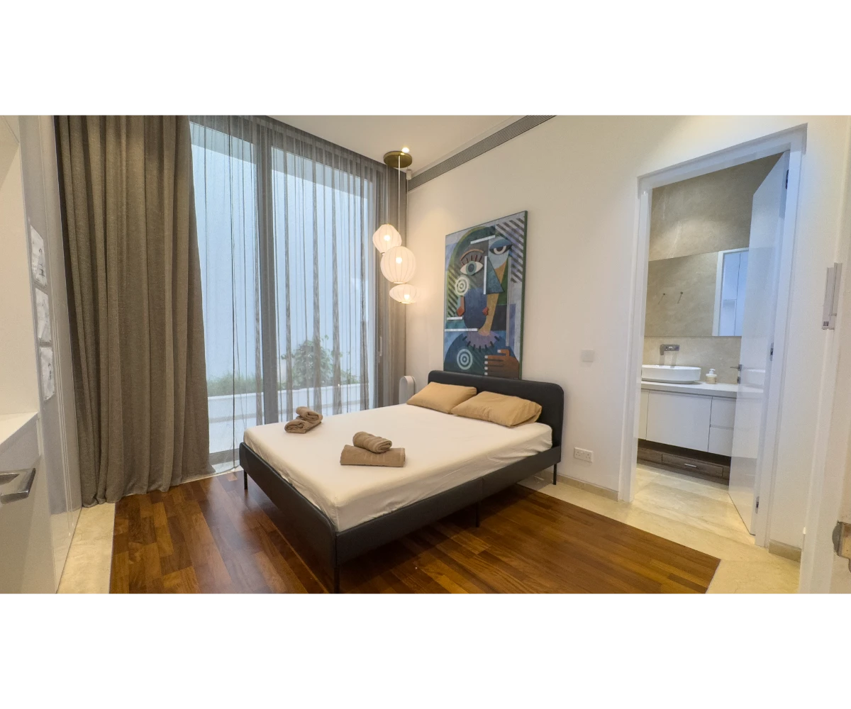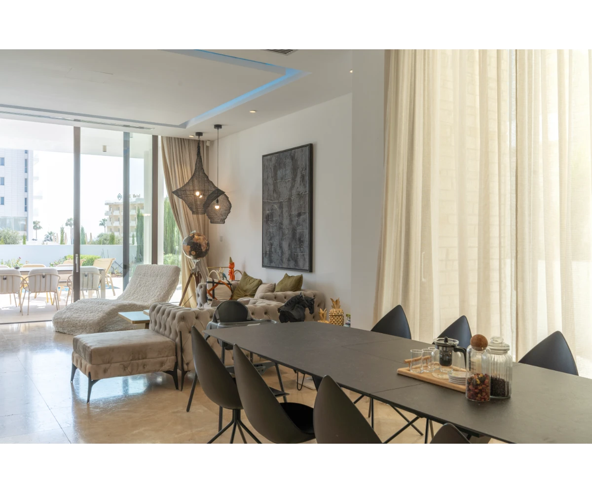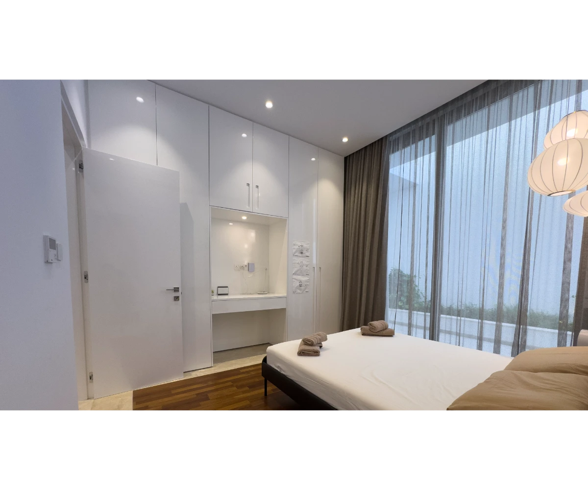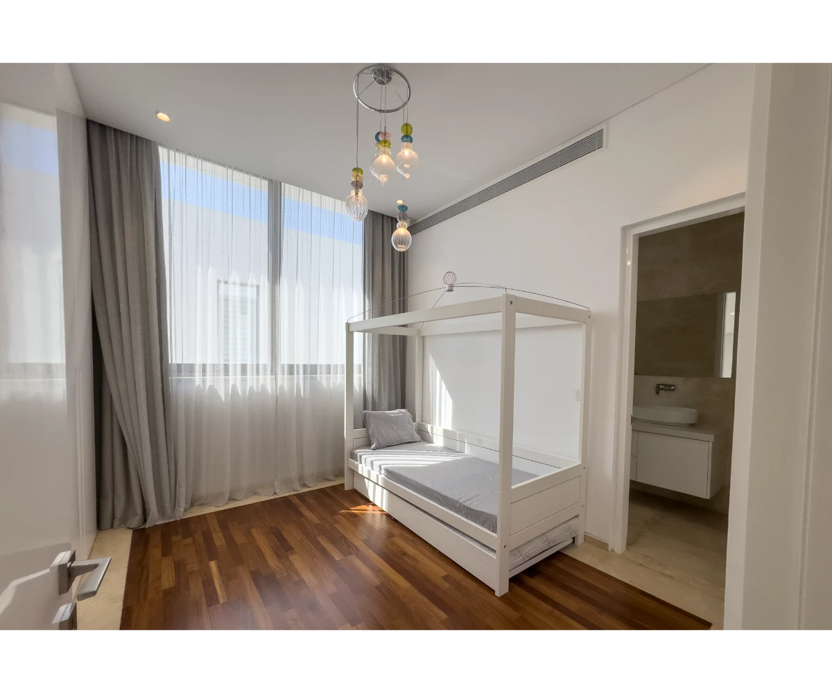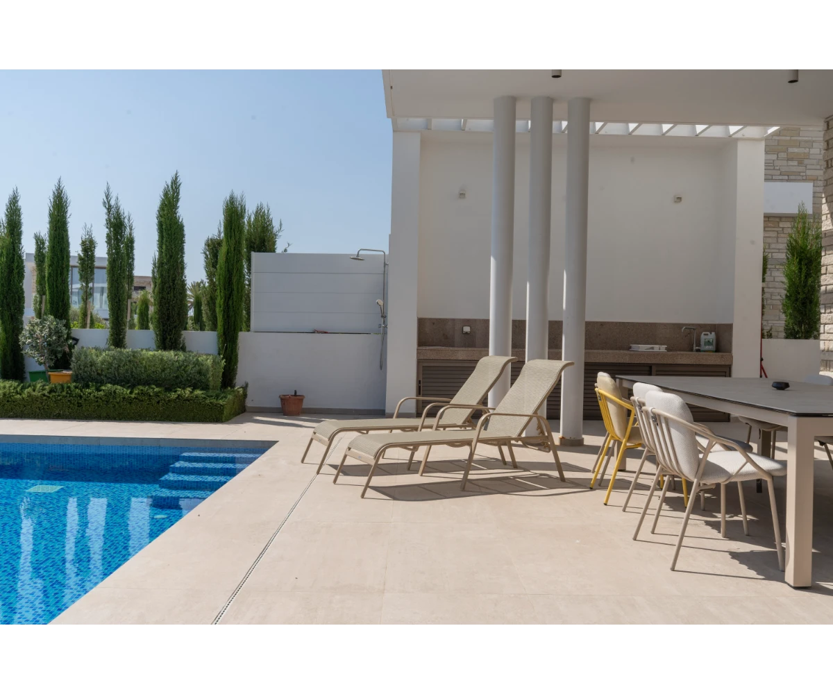 Located in the heart of Kato Paphos, just 200m from the beach, this 5-bedroom detached villa offers 330m² of luxury on a 468m² plot. It features marble floors, high ceilings, an elevator, spacious open-plan areas, a modern kitchen, and en-suite bedrooms. Outdoors include a private pool, landscaped courtyard, BBQ area, verandas, plus access to a communal pool. Smart home system, photovoltaic panels, and underfloor heating ensure year-round comfort. Part of an exclusive gated community with premium amenities, it is within walking distance to nightlife, schools, universities, services, the historic castle, and the picturesque harbour – yet set in a quiet area away from the main road.