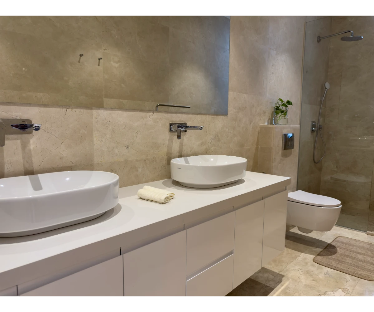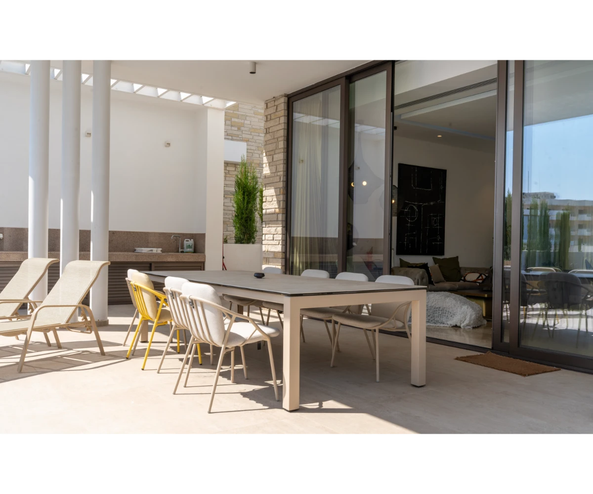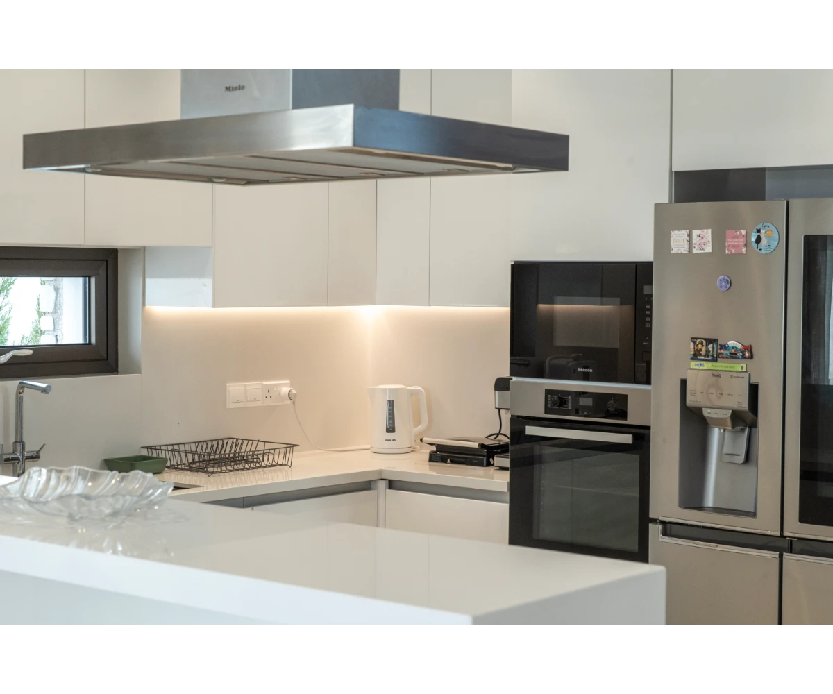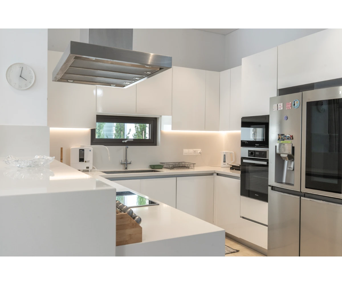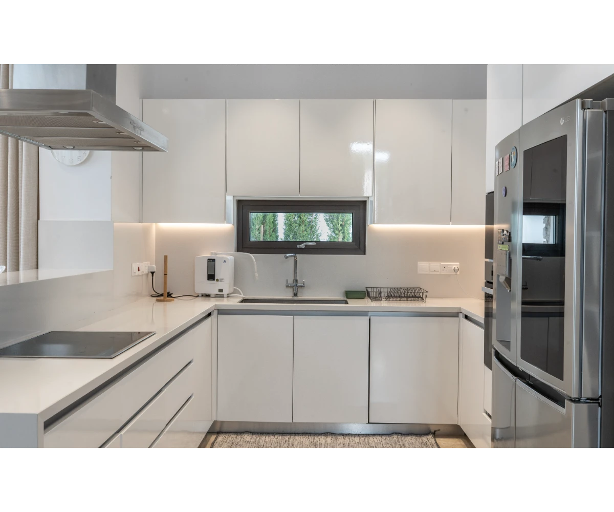 Located in the heart of Kato Paphos, just 200m from the beach, this 5-bedroom detached villa offers 330m² of luxury on a 468m² plot. It features marble floors, high ceilings, an elevator, spacious open-plan areas, a modern kitchen, and en-suite bedrooms. Outdoors include a private pool, landscaped courtyard, BBQ area, verandas, plus access to a communal pool. Smart home system, photovoltaic panels, and underfloor heating ensure year-round comfort. Part of an exclusive gated community with premium amenities, it is within walking distance to nightlife, schools, universities, services, the historic castle, and the picturesque harbour – yet set in a quiet area away from the main road.