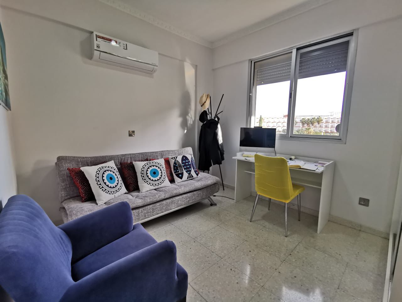 להשכרה לטווח ארוך בפאפוס, אזור קברי המלכים (טומבס אוף דה קינגס): דירה מודרנית עם שני חדרי שינה. הנכס מרוהט קומפלט, משופץ וכולל מרפסת עם נוף לים. הדיירים נהנים מגישה לבריכה משותפת וחניה מקורה. ממוקם במרחק של 350 מטר בלבד מחוף ונוס ו-200 מטר מלידל. תנאי השכרה: חודש שכירות + שני פיקדונות.