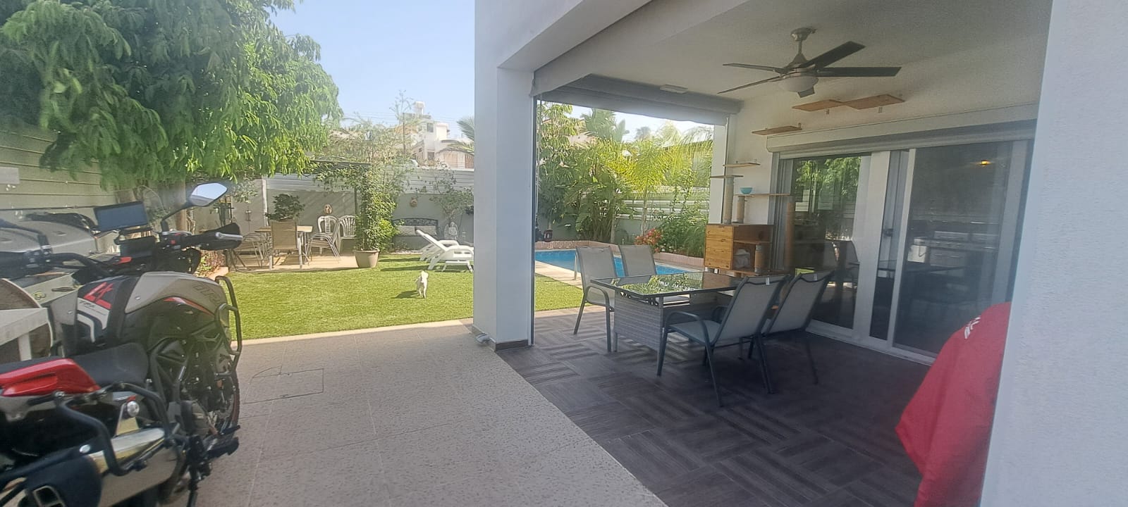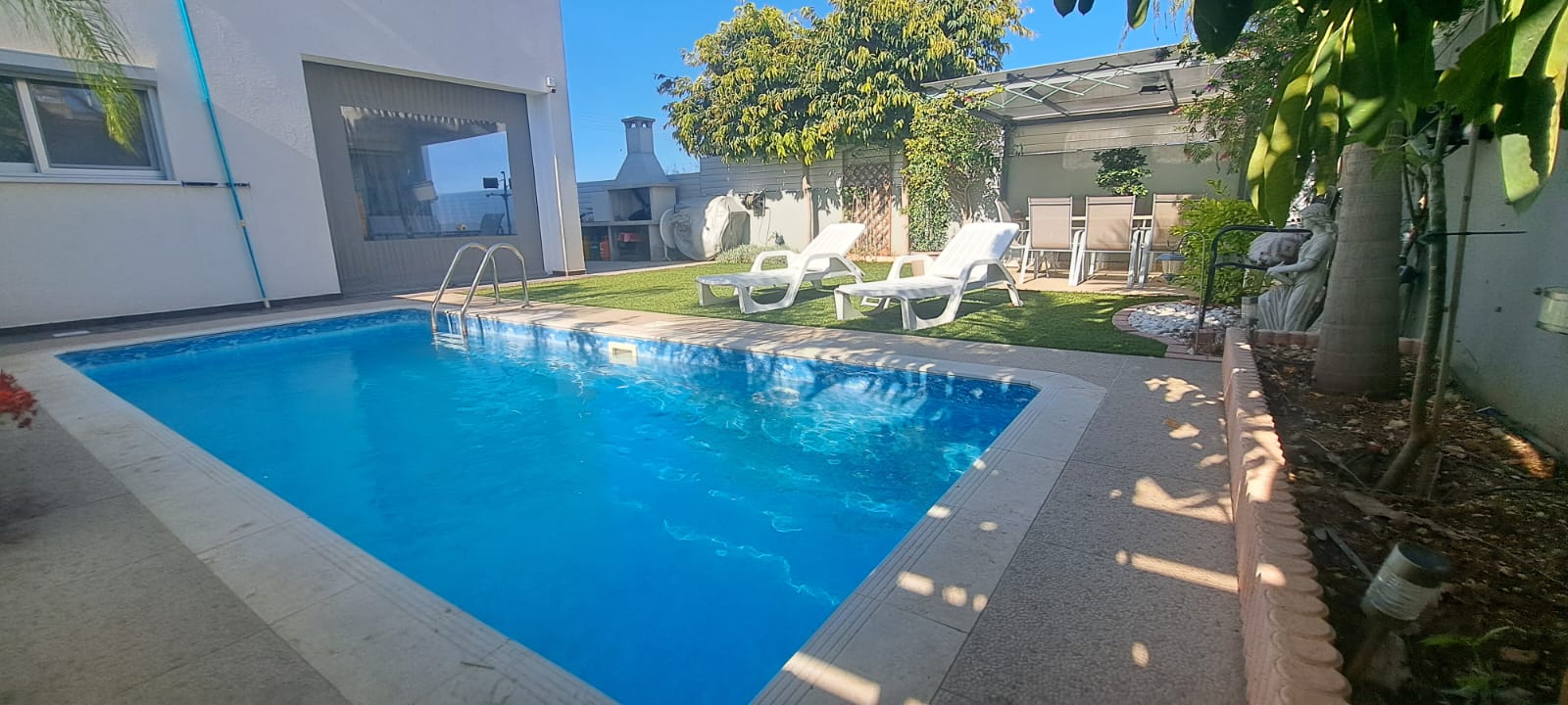 בית דו-משפחתי בטרכוני עם 3 חדרי שינה, 2 חדרי רחצה ושירותי אורחים, מושלם למגורים נוחים למשפחה. הנכס כולל גם חדר כביסה, חדר אחסון וגינה מרווחת המותאמת להנאה חיצונית. תכונות נוספות כוללות בריכה פרטית ומערכת אזעקה לביטחון נוסף. נדרש פיקדון אחד וחודש שכירות מראש.