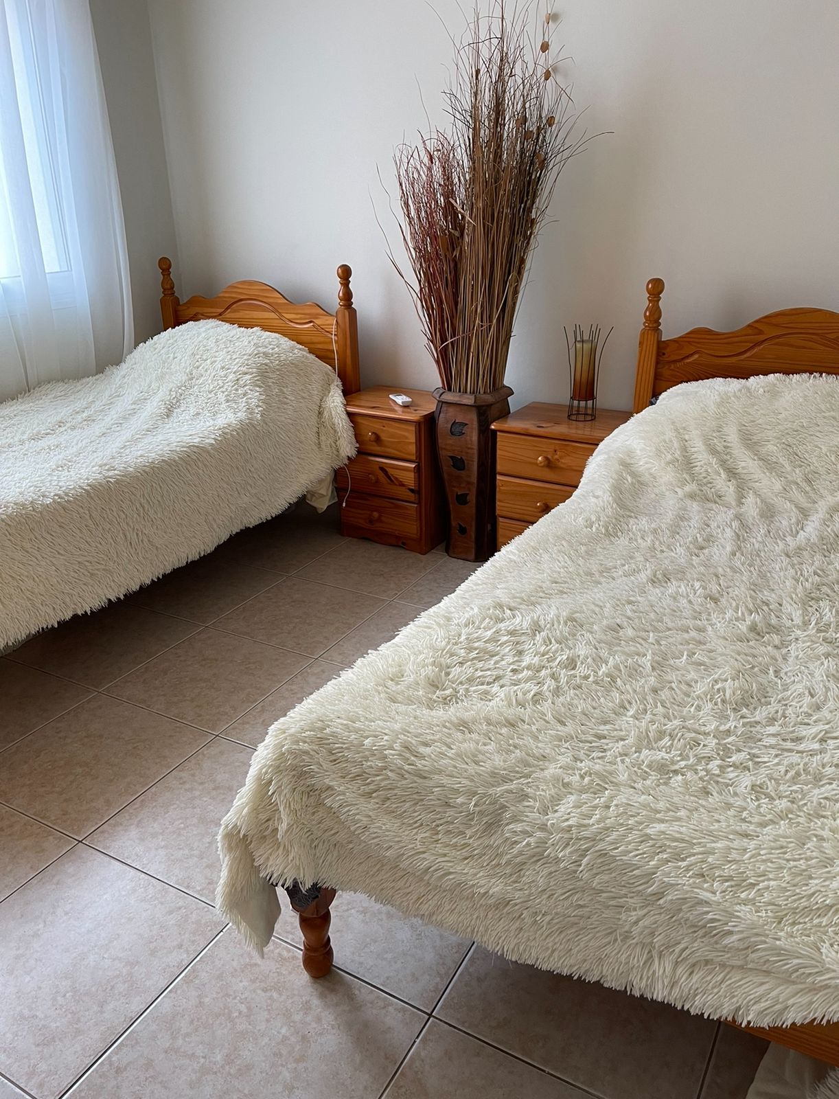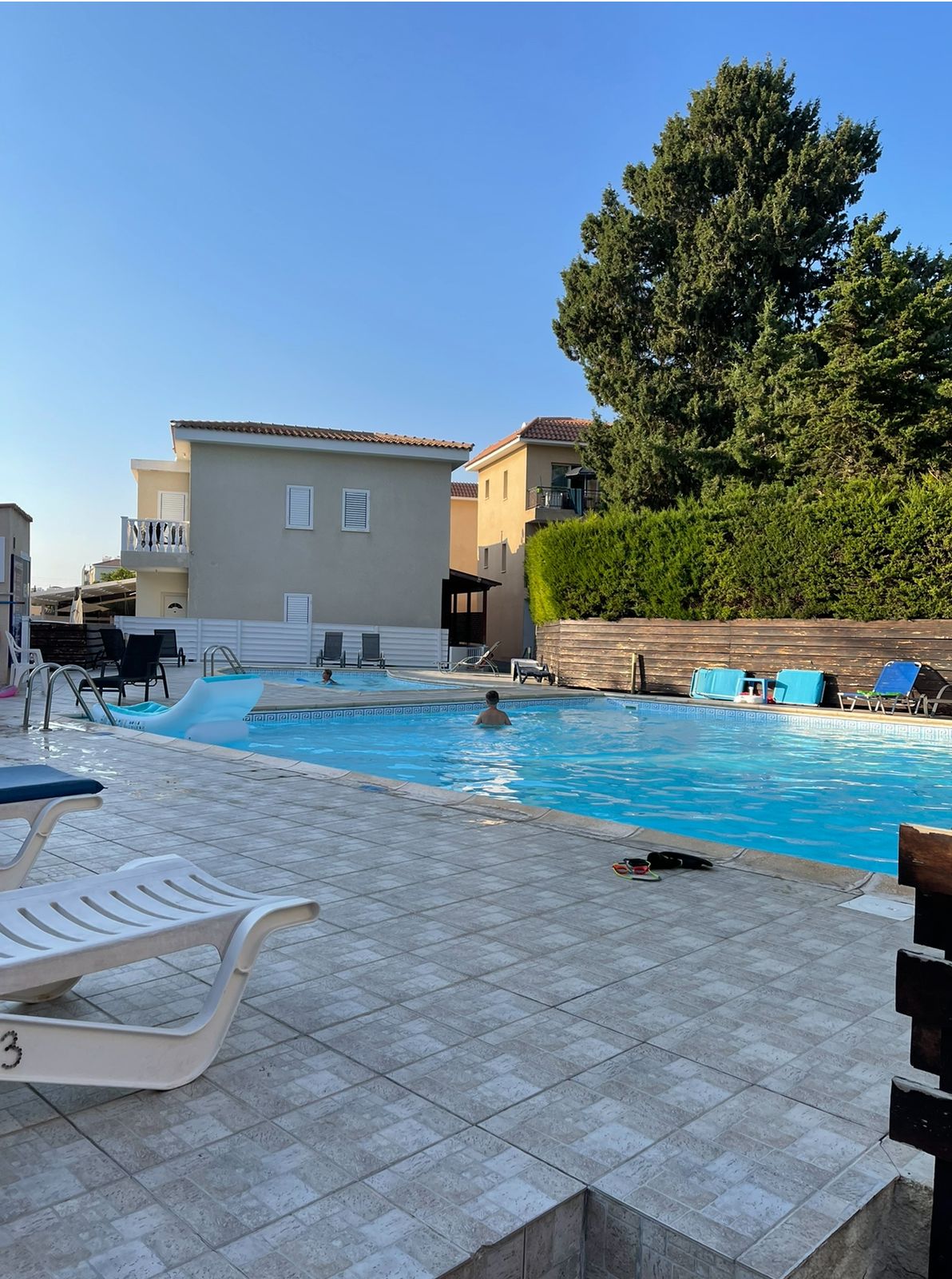 למכירה בפאפוס, יוניברסל. בית עירוני (מזונט) עם 3 חדרי שינה ו-3 חדרי רחצה במצב מעולה. הנכס ממוקם במיקום מרכזי ושקט. שטח הבנוי הוא 116 מ”ר. הבית מרוהט קומפלט וכולל מרפסת, חדר אחסון, חניה מקורה, גינה ובריכת שחייה משותפת. הבית מצויד במערכות מיזוג אוויר מלאות בכל החדרים. שטר בעלות תקין. מושכר בחוזה קיים עד אוגוסט 2025 עם הכנסה חודשית של 1,400 אירו.